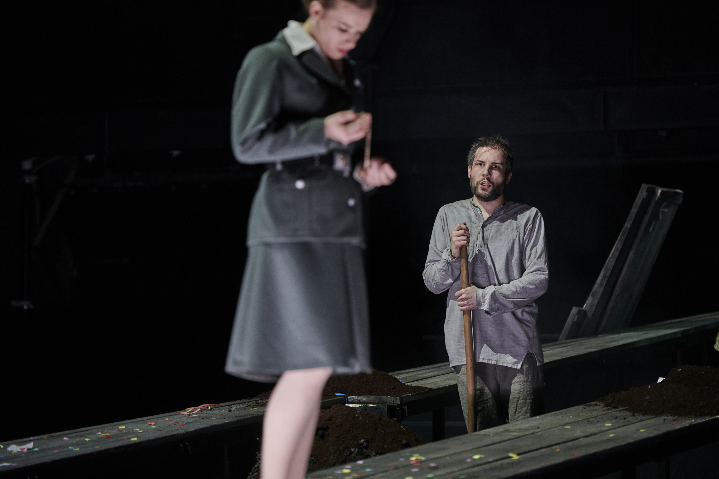 Staatstheater Braunschweig Spielzeit 2018-2019 Musiktheater Die Passagierin Oper in zwei Akten, acht Bildern und einem Epilog von Mieczysław Weinberg Libretto von Alexander Medwedew nach der gleichnamigen Novelle von Zofia Posmysz in deutscher, englischer, polnischer und hebräischer Sprache mit deutschen Übertiteln Premiere 06.04.2019 Musikalische Leitung: Christopher Lichtenstein Regie: Dirk Schmeding Bühne: Ralf Käselau Kostüme: Julia Rösler Choreografie: Fabian Cohn Chor: Georg Menskes Dramaturgie: Valeska Stern Vermittlung: Iris Kleinschmidt Lisa: Dorothea Spilger Walter: Matthias Stier Marta: Ekaterina Kudryavtseva Tadesuz: Vincenzo Neri Katja: Ivi Karnezi Krystina: Milda Tubelytė Vlasta: Alexandra von Roepke Hannah: Friederike Harmsen Yvette: Anat Edri Bronka: Zhenyi Hou Alte: Sabine Brandt Erster SS-Mann: Jisang Ryu Zweiter SS-Mann / Älterer Passagier: Michael Eder Dritter SS-Mann: Kwonsoo Jeon Kapo: Marina Funke Oberaufseherin: Kathrin Reinhardt Steward / Lagerkommandant: Raphael Traub sowie: Staatsorchester Braunschweig, Chor des Staatstheaters Braunschweig